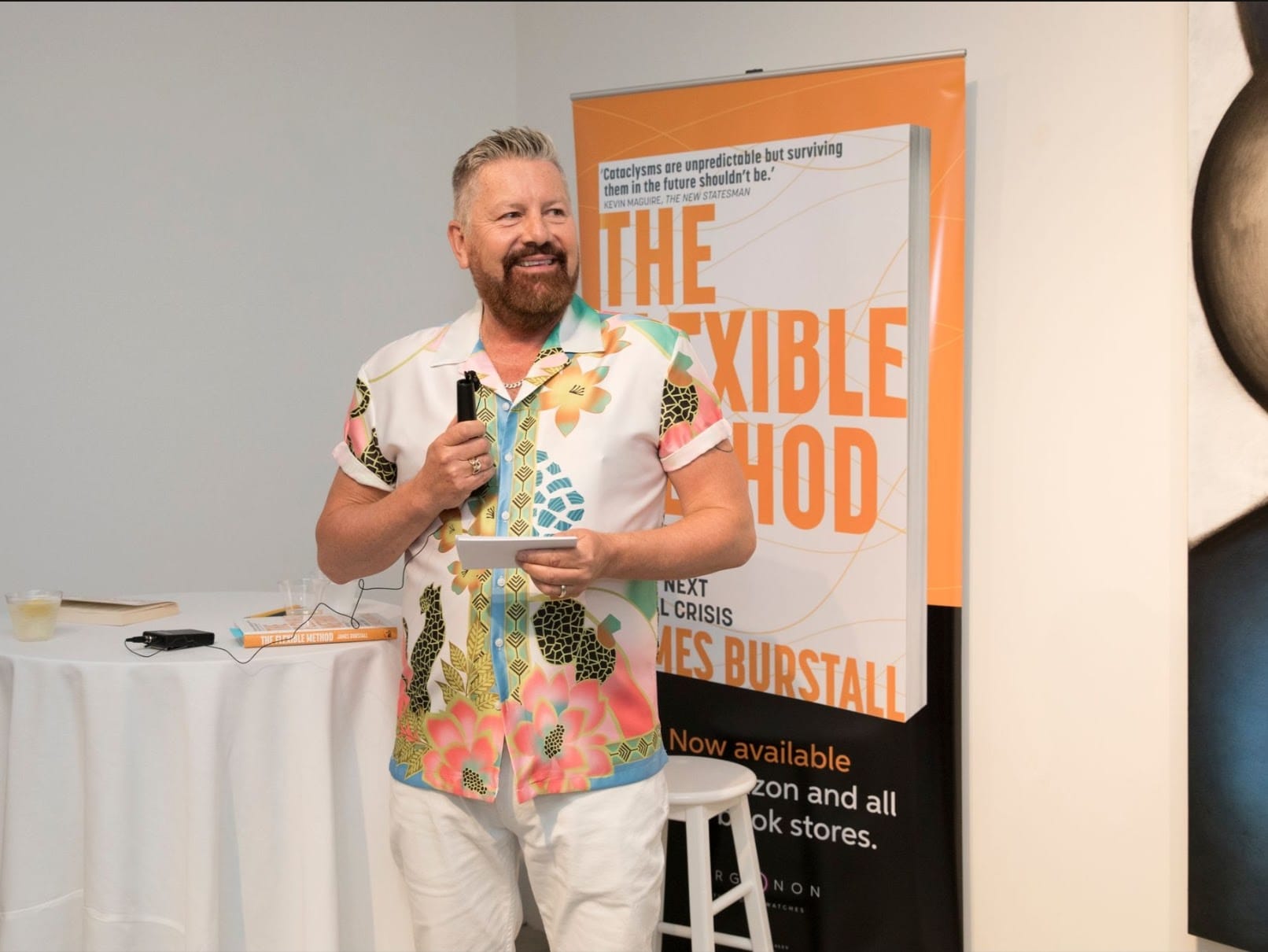 The US launch of our CEO James Burstall’s book, The Flexible Method: Prepare to Prosper In The Next Global Crisis, took place on Tuesday the 18th of July and saw a lively event with a full house of guests including valued colleagues, industry partners, book contributors, influencers, friends, and family, travelling from New York and beyond, all set against the stunning backdrop of the Albertz Benda Contemporary Art Gallery in Chelsea, NYC.
